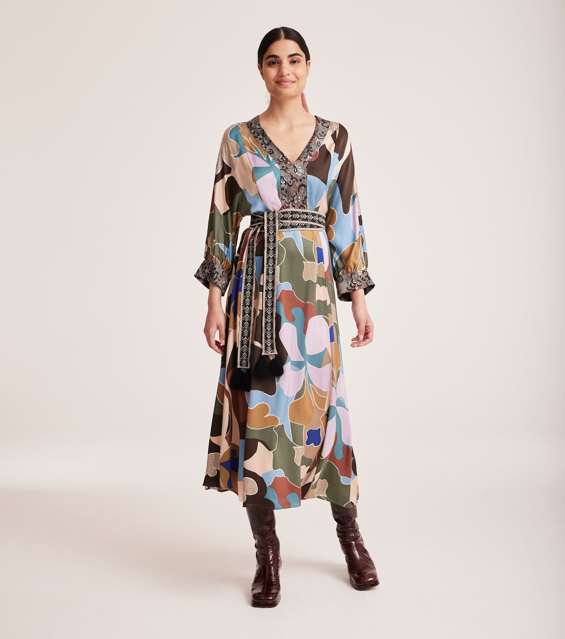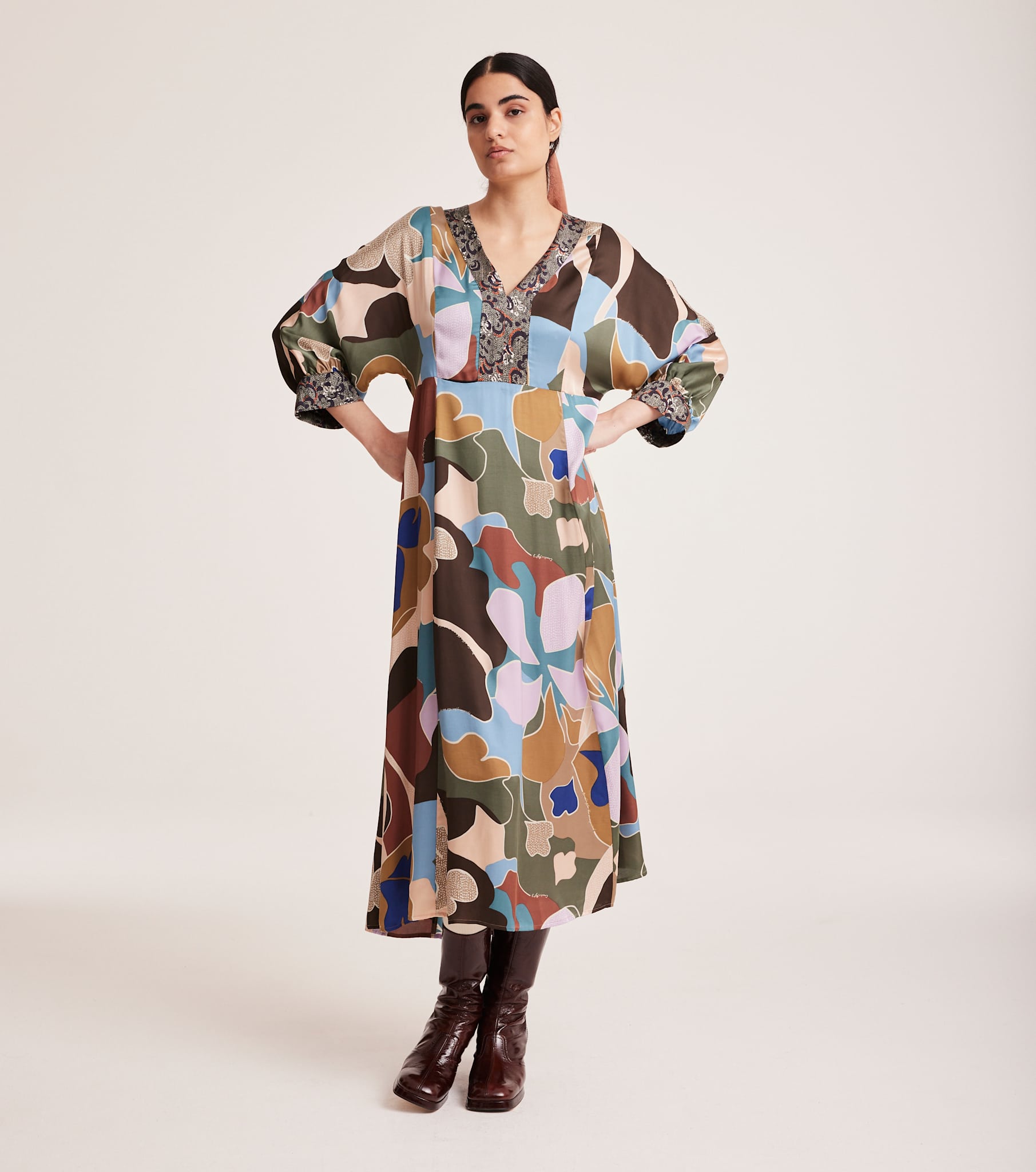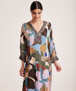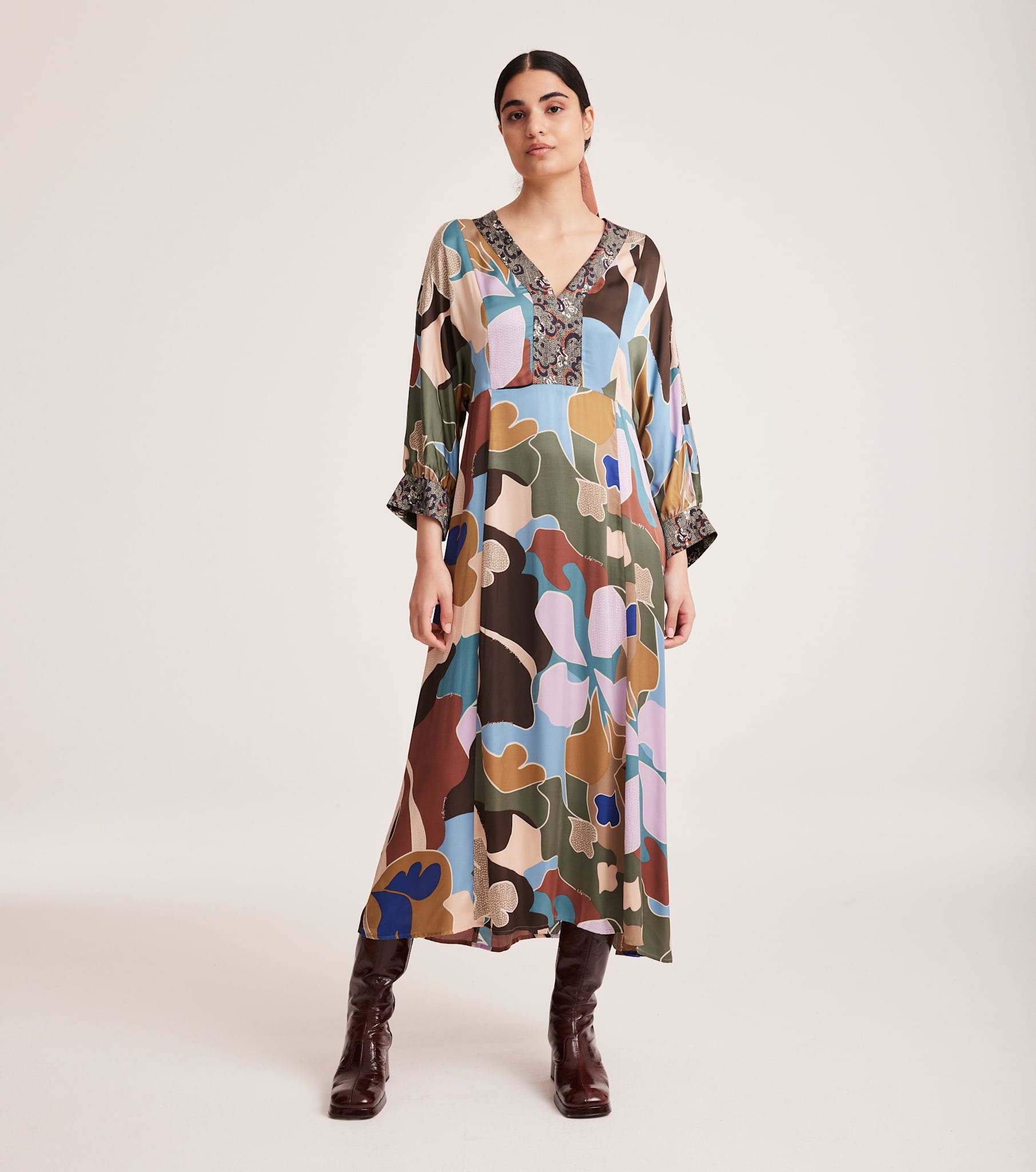 PRODUCT DESCRIPTIONPRODUCT DESCRIPTIONThe Odd Molly Amalia Dress is a long, flowy viscose maxi dress with a colorful block print. The print art is made by our in-house print designer. She’s embedded small, dreamy quotes in the art, for example: “Heading for the unexpected” and “Creative flying”.|PRODUCT DETAILSPRODUCT DETAILS