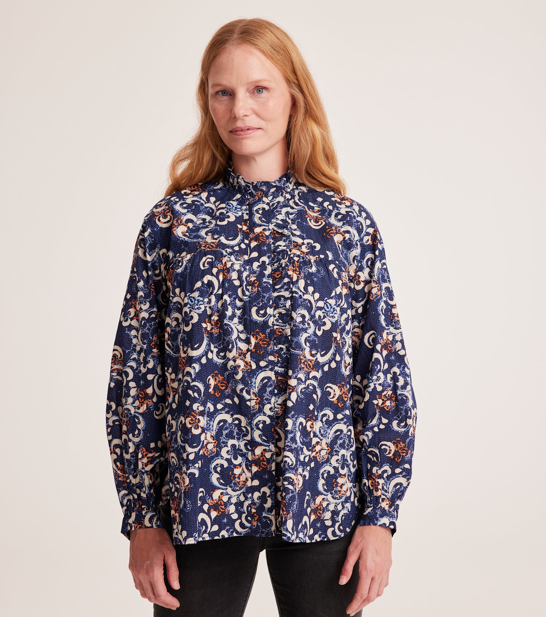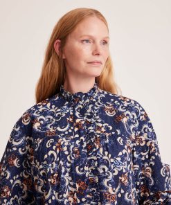 PRODUCT DESCRIPTIONPRODUCT DESCRIPTIONThe Odd Molly Arienne Blouse is an organic cotton blouse with an allover print made by our in-house print designer. It has long sleeves with cuffs and mother of pearl buttons for closure. It has a high neck, frill details and gathers at the front and on the sleeves.|PRODUCT DETAILSPRODUCT DETAILS