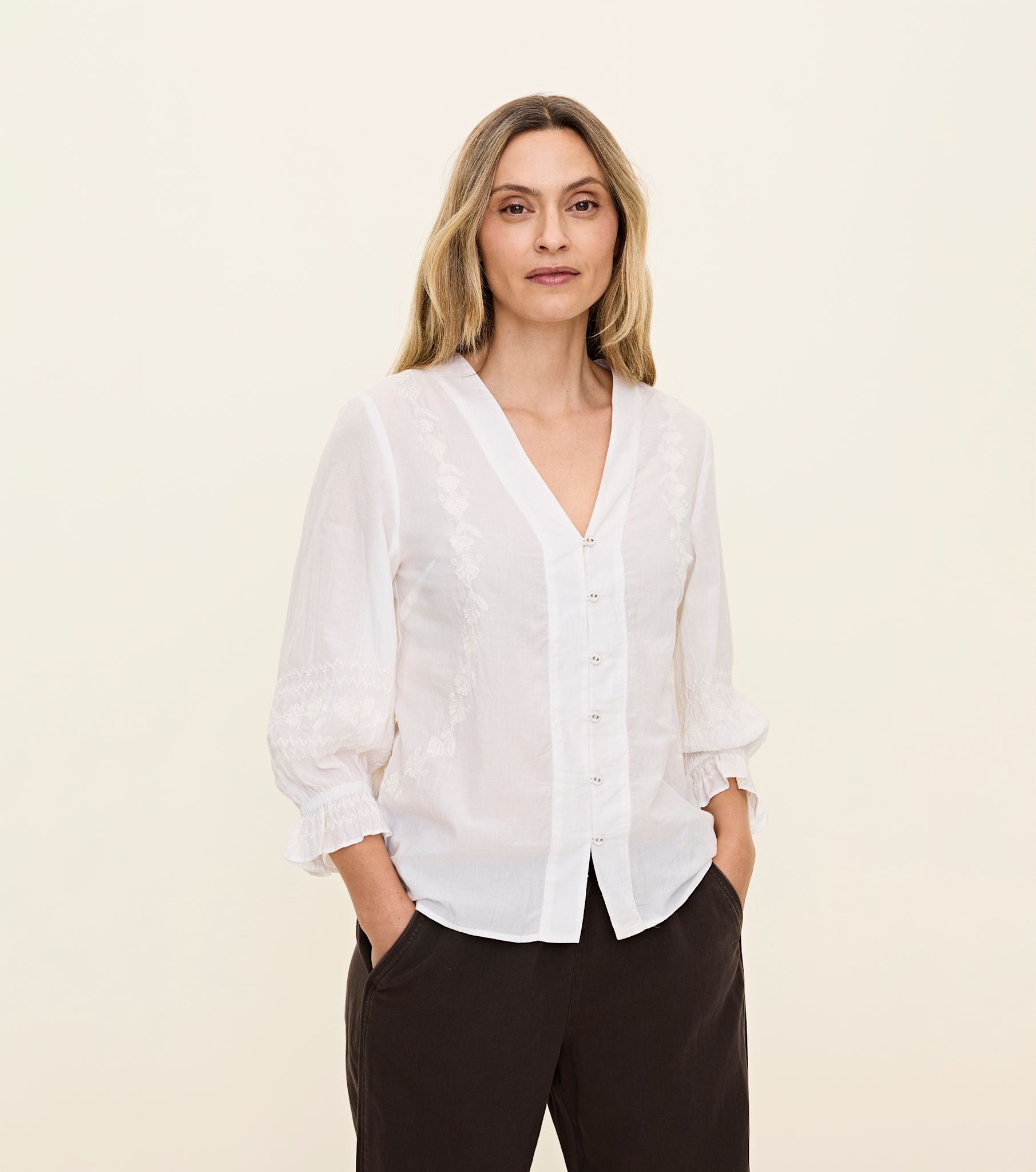 PRODUCT DESCRIPTIONPRODUCT DESCRIPTIONThe Odd Molly Garden Blouse is an organic cotton blouse with embroidery. It has 3/4-sleeves with elastic and a v-neck with buttons at the front.|PRODUCT DETAILSPRODUCT DETAILS