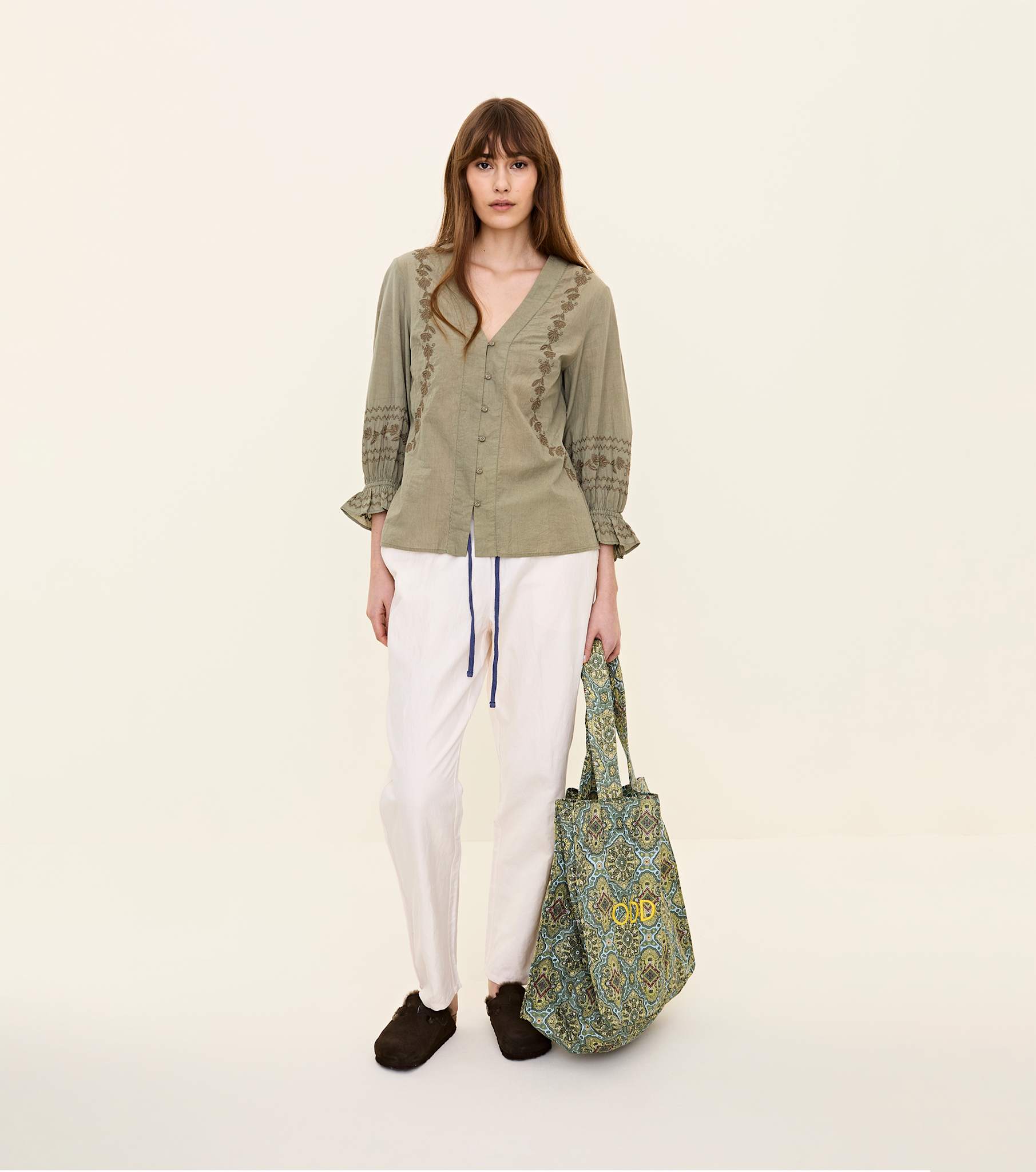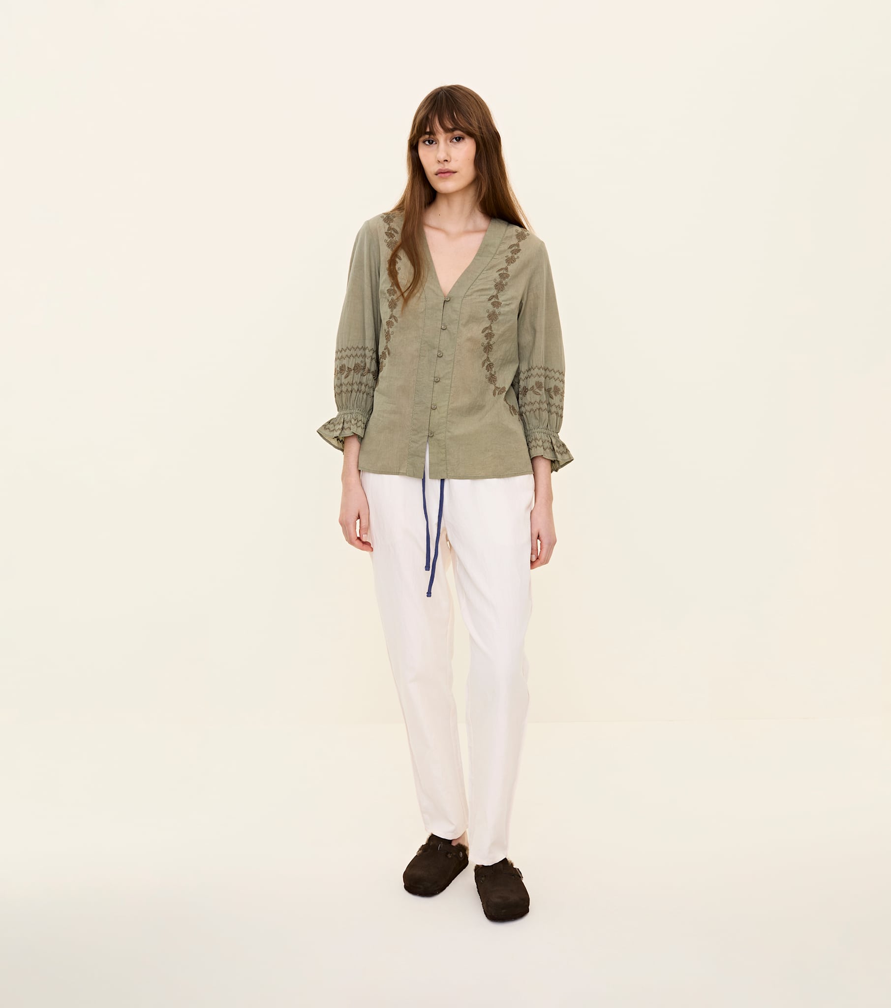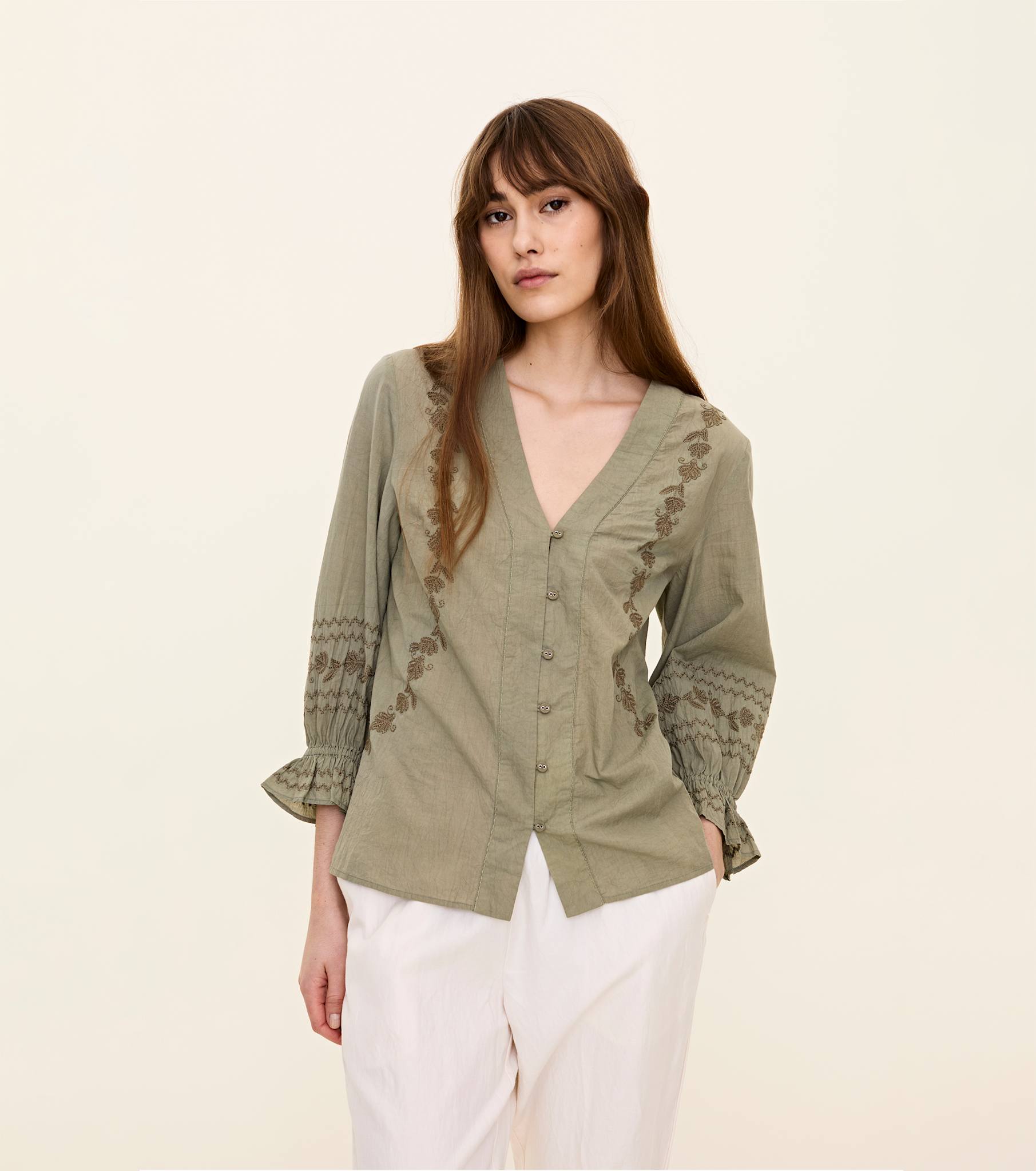 PRODUCT DESCRIPTIONPRODUCT DESCRIPTIONThe Odd Molly Garden Blouse is an organic cotton blouse with embroidery. It has 3/4-sleeves with elastic and a v-neck with buttons at the front.|PRODUCT DETAILSPRODUCT DETAILS