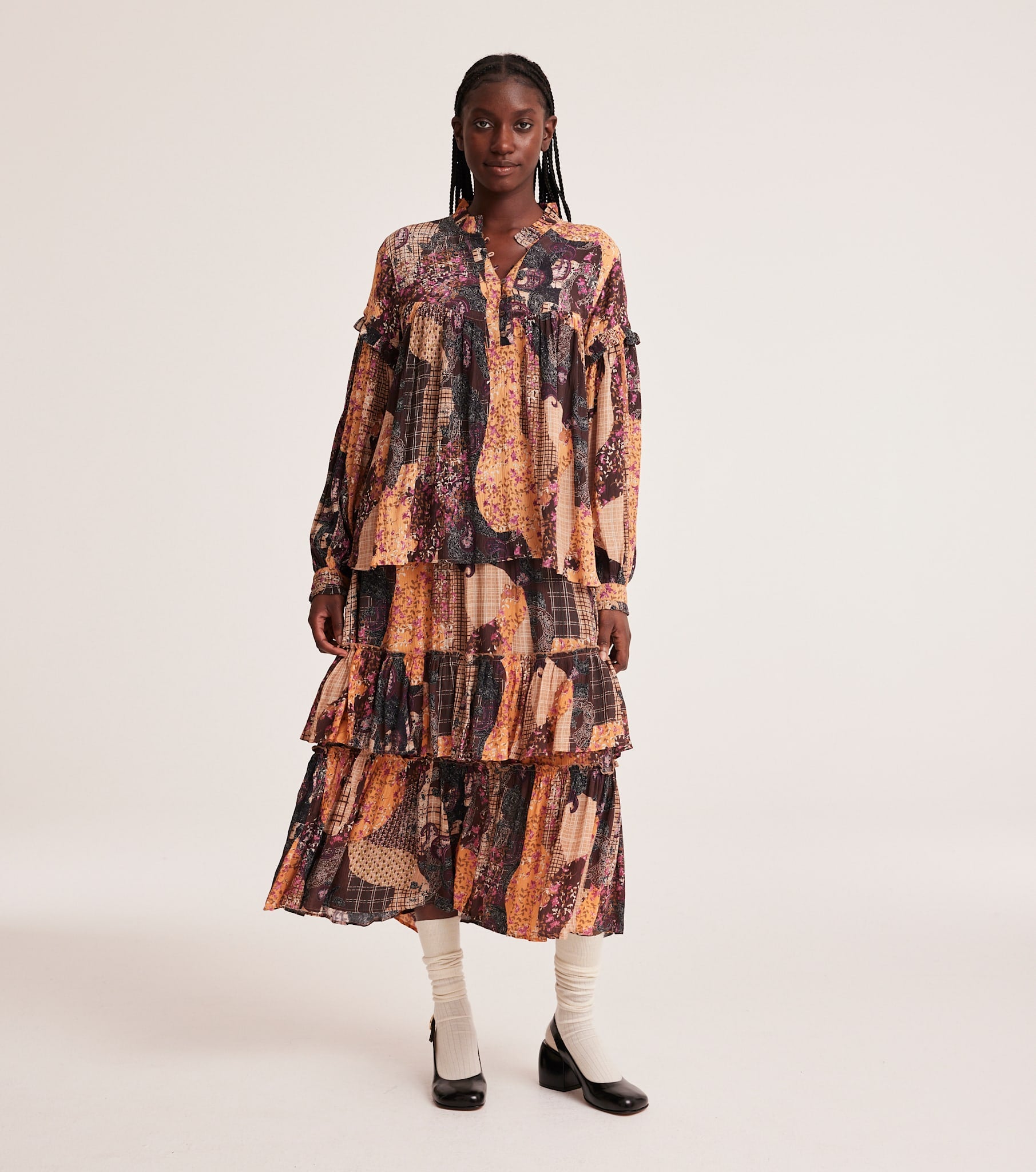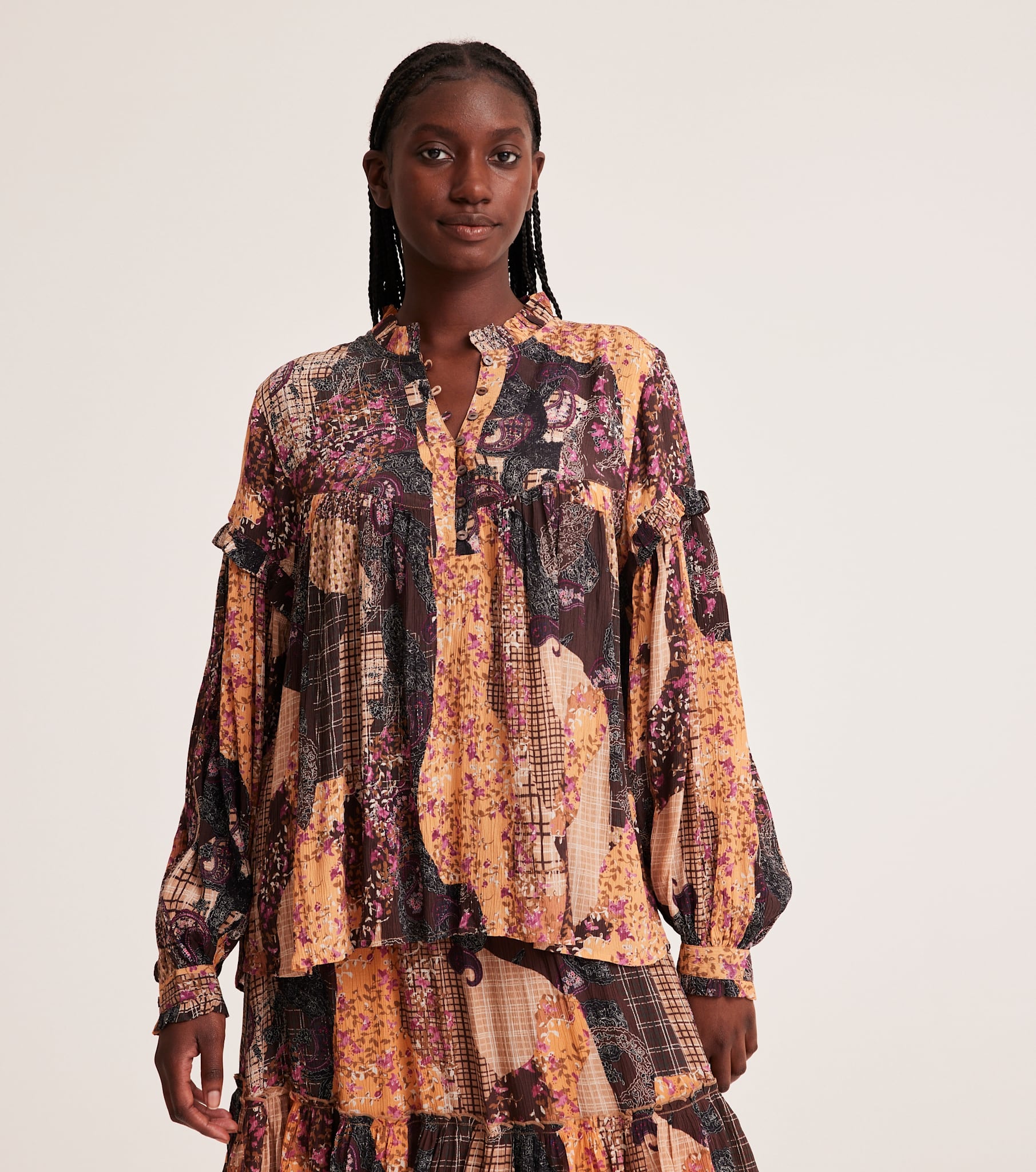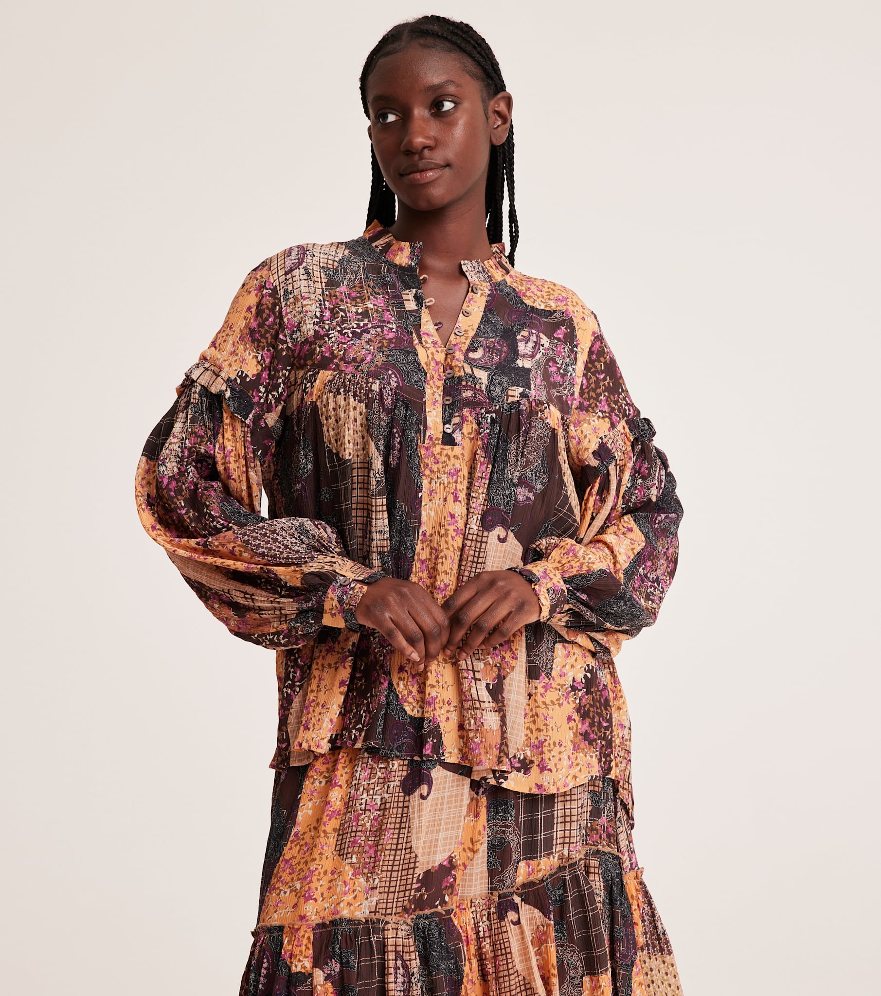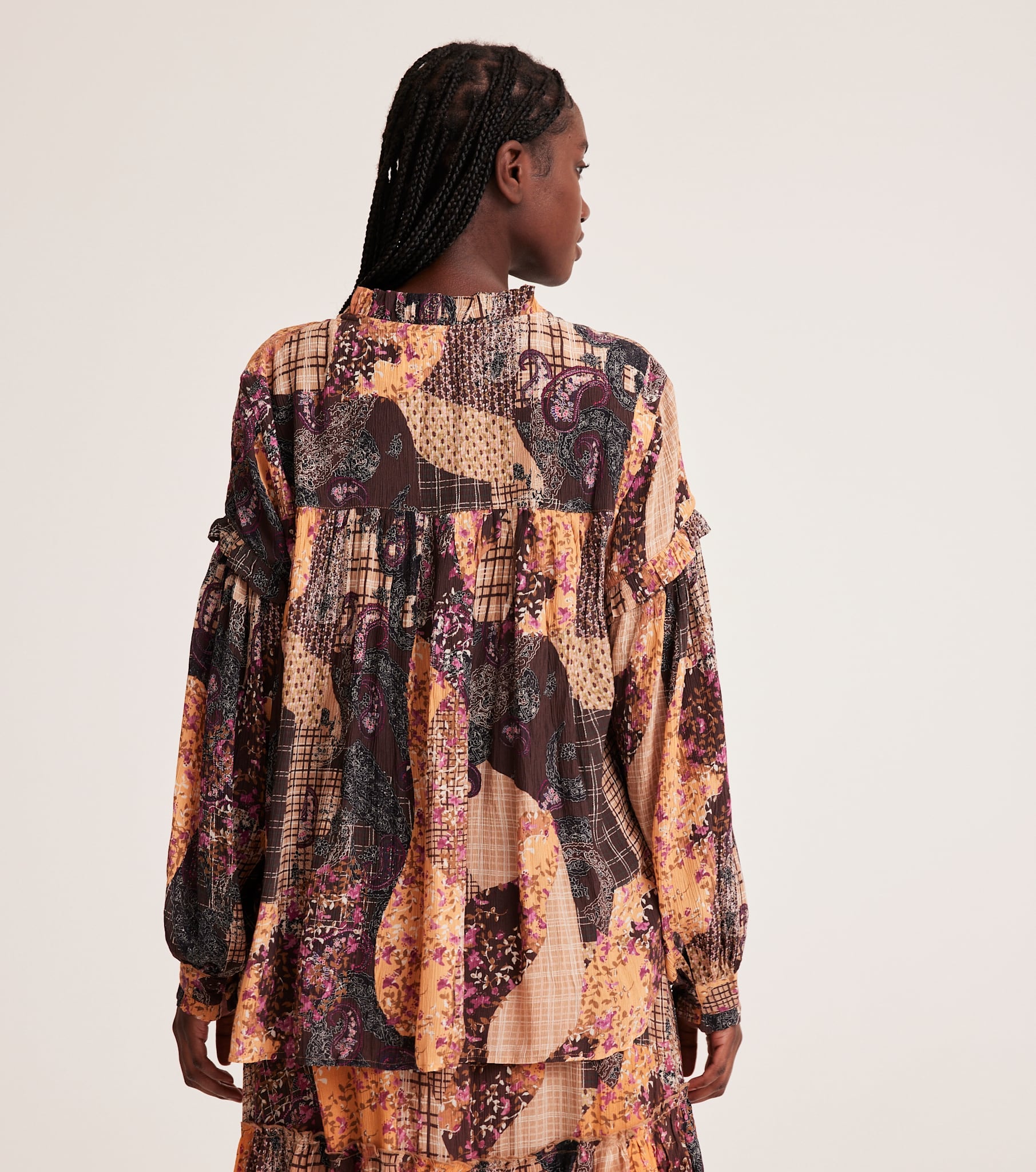 PRODUCT DESCRIPTIONPRODUCT DESCRIPTIONThe Odd Molly Lauren Blouse is a viscose-modal chiffong blouse with an allover print. The different prints in this blouse brings together all prints in the whole Fall/Winter collection. It has long sleeves with frill details. It has a placket with mother of pearl buttons and gathers. Style with the Lauren Skirt for a statement look.|PRODUCT DETAILSPRODUCT DETAILS