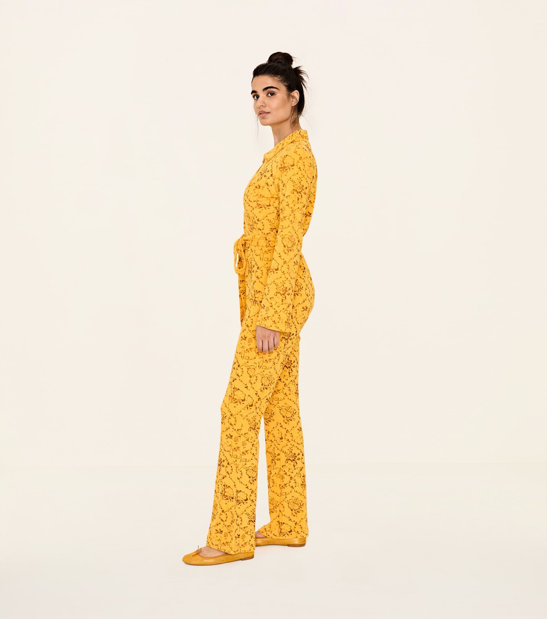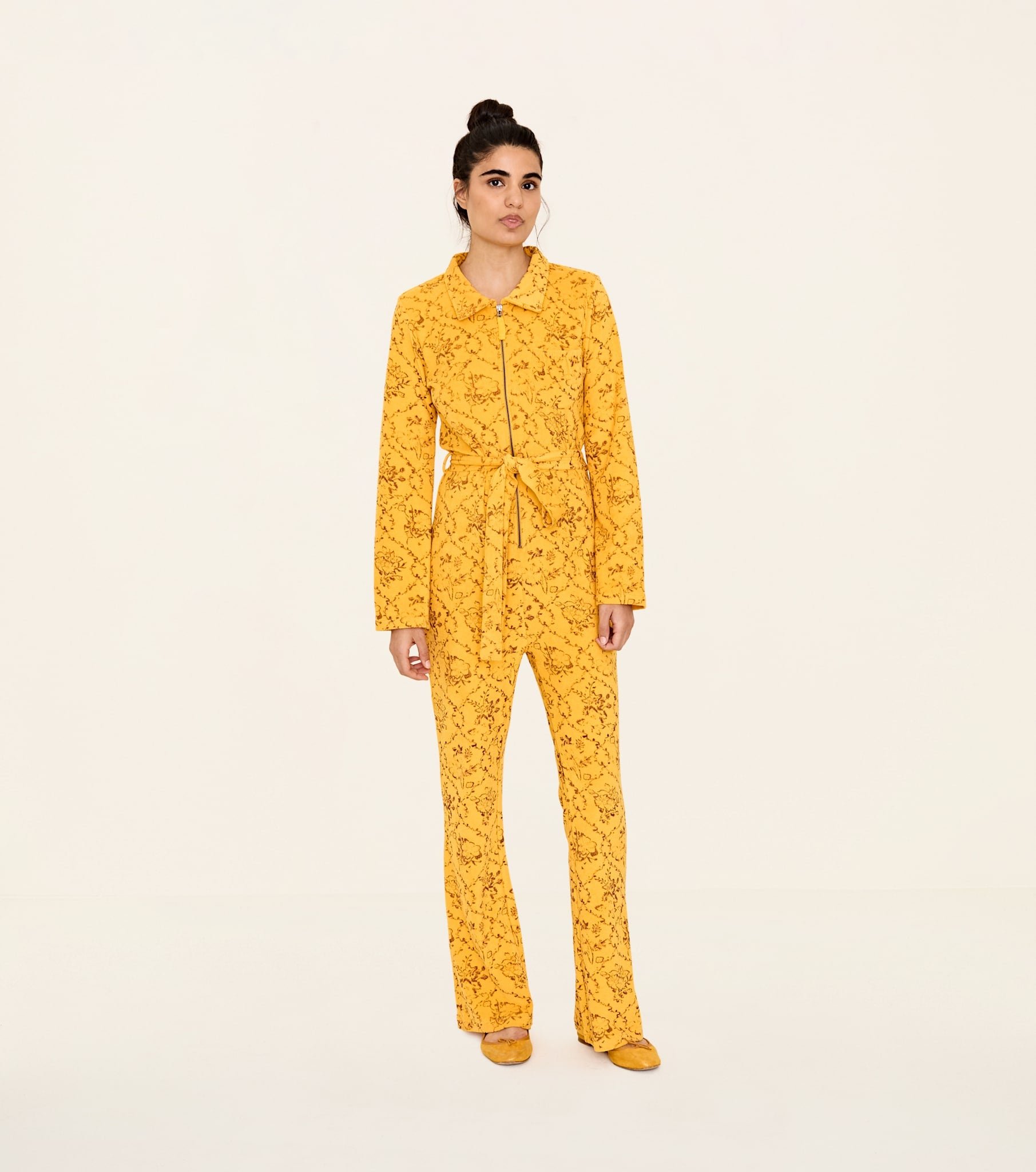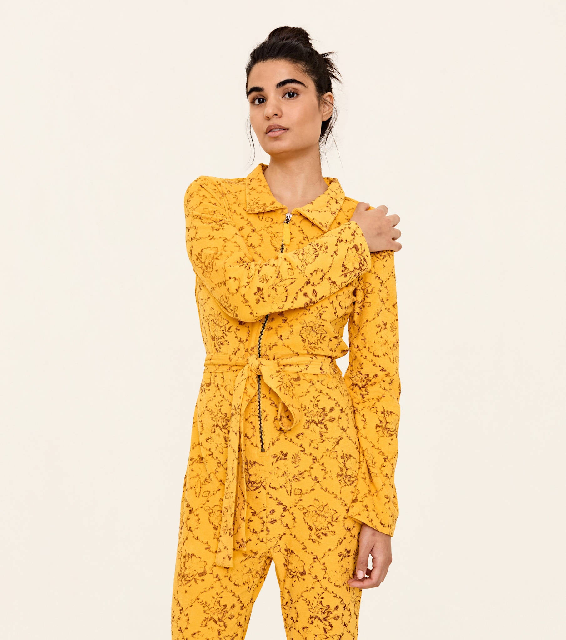 Comfy just got cool. This soft frotté jersey jumpsuit is your new statement piece — perfect for days when you want to feel free, but still totally put-together. With a subtle all-over floral one-tone print, a classic collar stand, and a flattering zip front, this women’s jumpsuit is all about easy elegance with a playful twist. The long sleeves and slightly flared legs create that effortless silhouette we love, while the fabric belt cinches the waist just right for a feminine shape. Finished with a small signature Odd Molly chest pocket — because details matter. Whether you’re lounging, strolling, or dressing it up with boots or sandals, this floral print jumpsuit lets your personality shine.