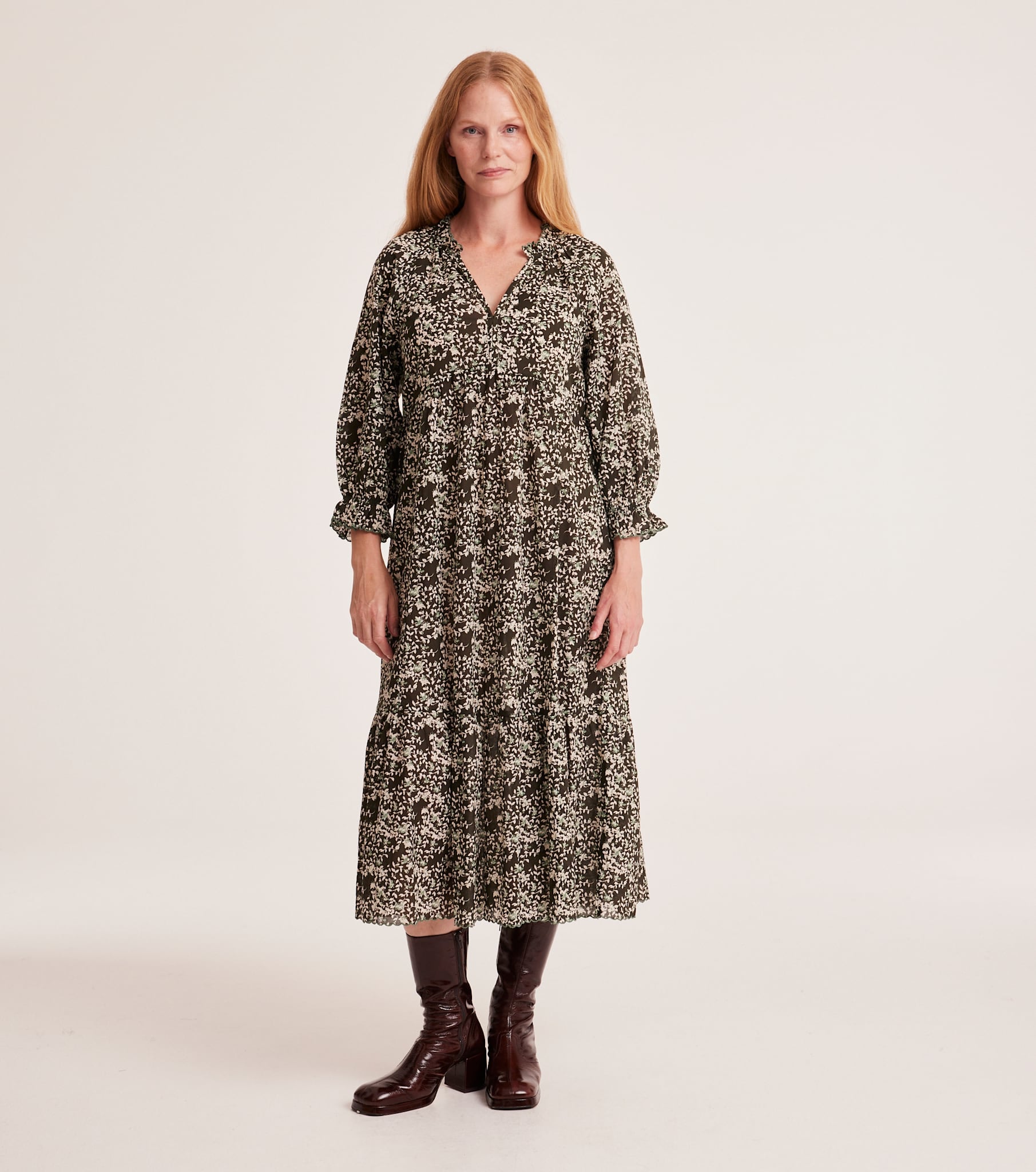 PRODUCT DESCRIPTIONPRODUCT DESCRIPTIONThe Odd Molly Rae Dress is an organic cotton midi dress with 3/4 sleeves and a V-neck. The print artwork is made by our in-house print designer. Style it with a vest and boots, and you’re ready for anything.|PRODUCT DETAILSPRODUCT DETAILS